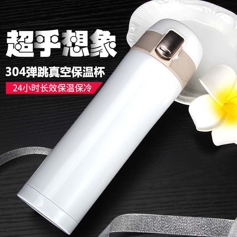 不锈钢保温杯男女学生便携车载水杯创意商务风弹跳杯礼品杯子批发
