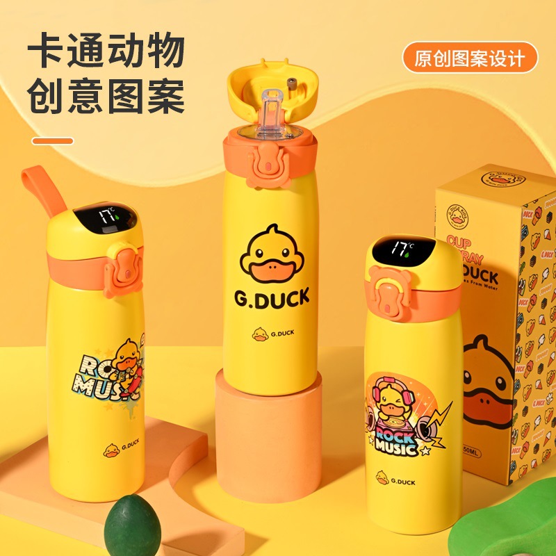 智能小黄鸭儿童吸管保温杯316食品级不锈钢高颜值学生可爱通水杯