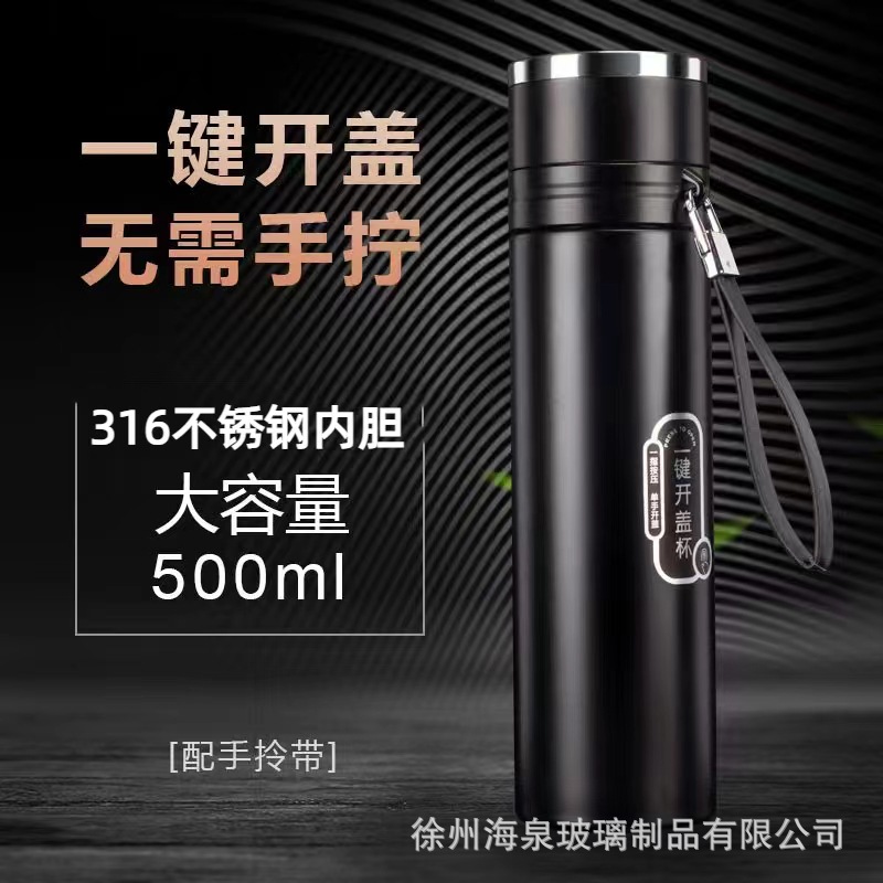速开保温杯一键开盖不锈钢茶水分离保温杯车载商务男士弹跳泡茶杯
