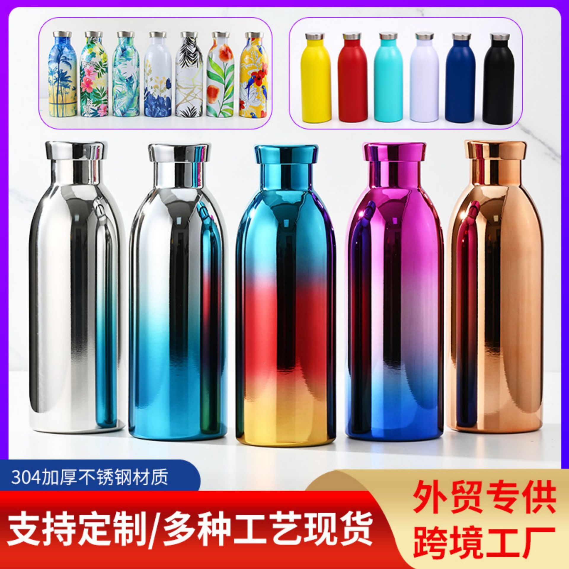 美式小口牛奶瓶304保温杯不锈钢可乐瓶制定logo原宿大肚水杯批发