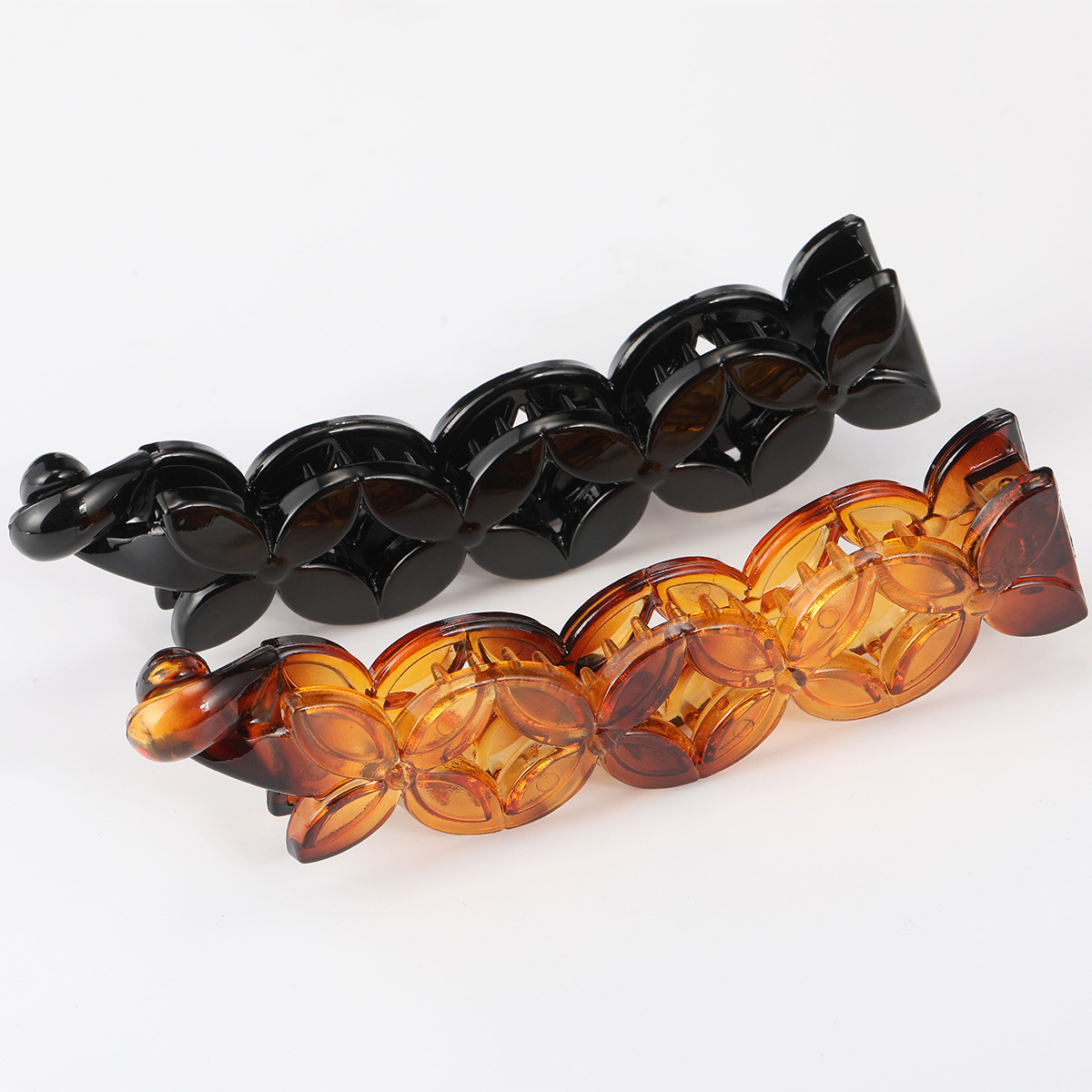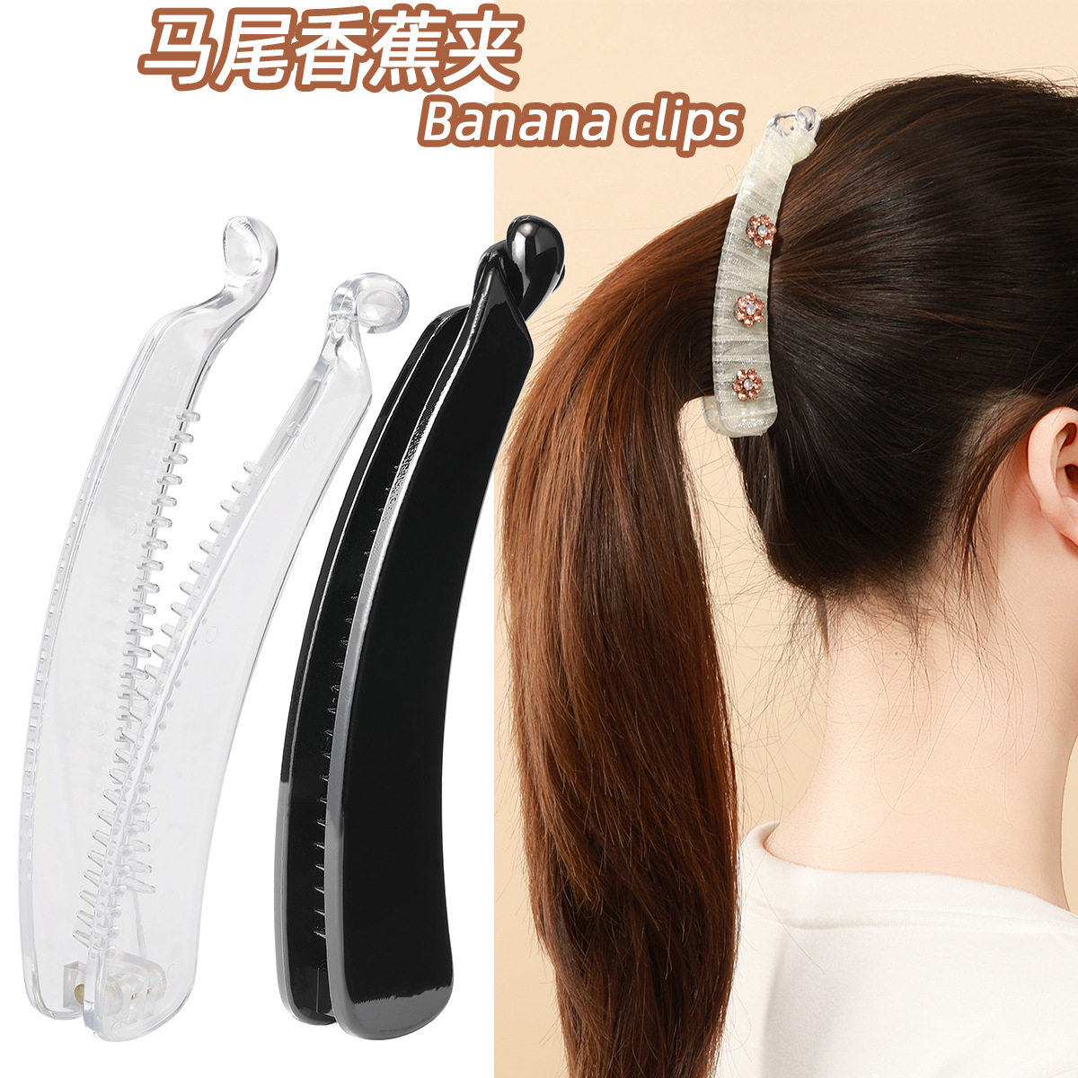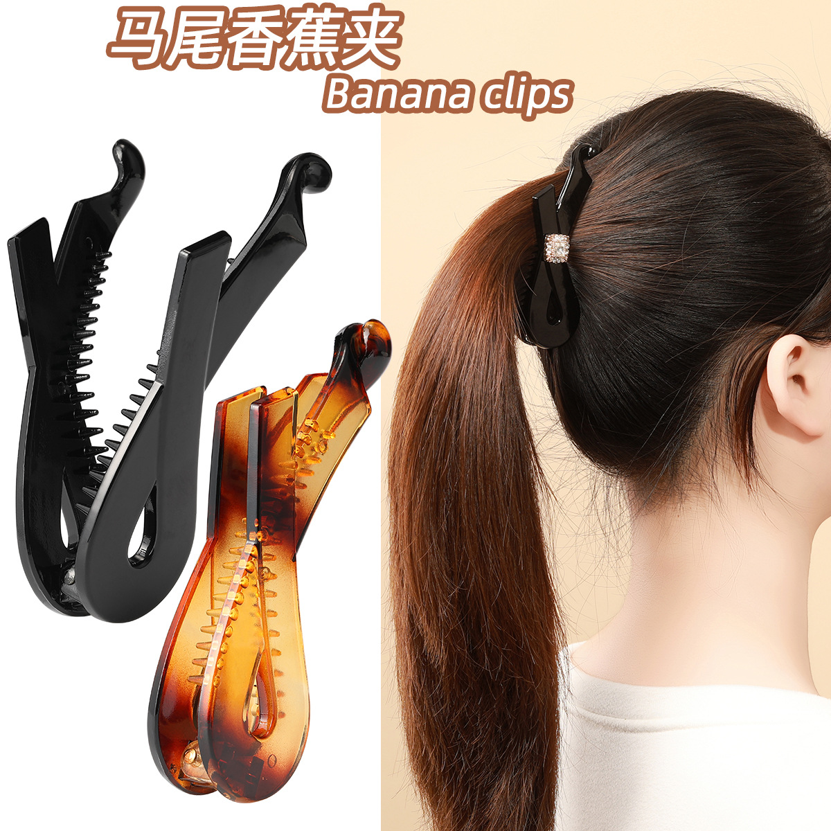 亮黑竖夹发夹香蕉夹 琥珀色发卡后脑勺简约增高颅顶显发量边夹女