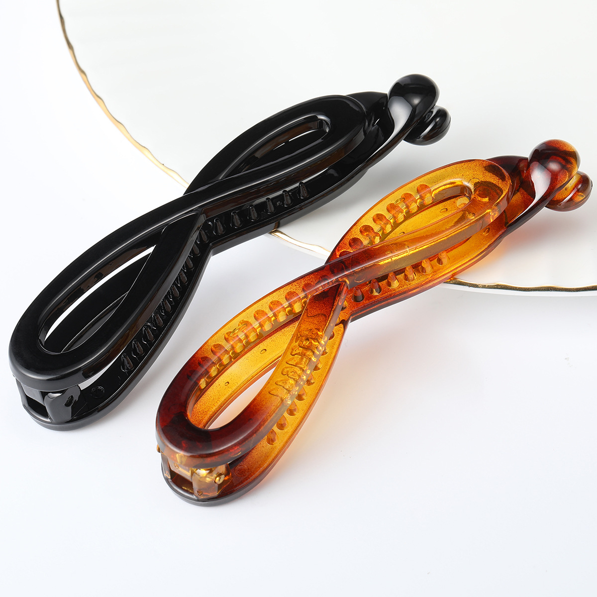 PC料高档8字香蕉夹竖夹马尾发夹 新款高端10公分蝴蝶结发卡diy