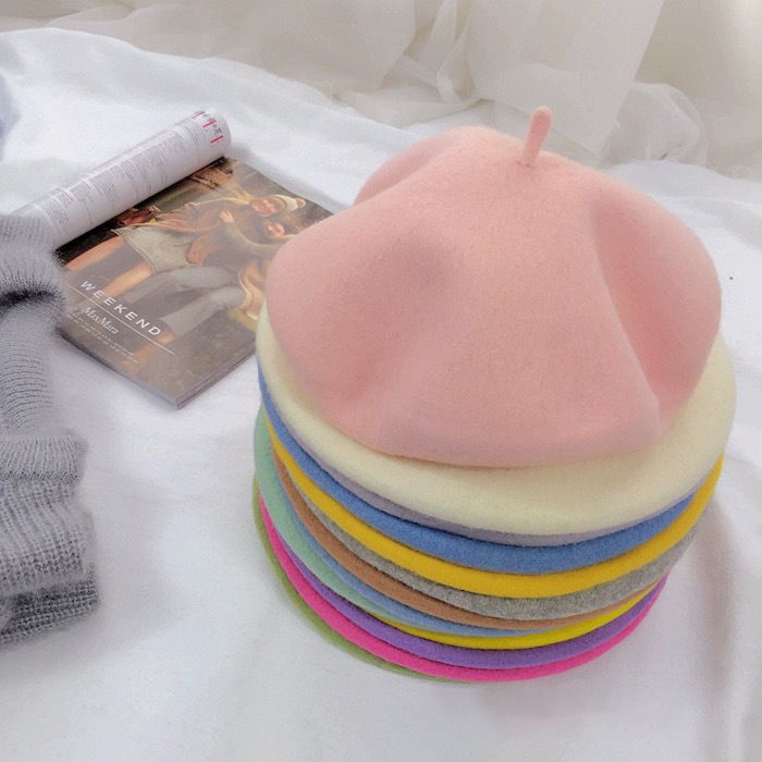 跨境提花字母秋冬季羊毛贝雷帽自由logo设计原创风格时尚保暖帽女