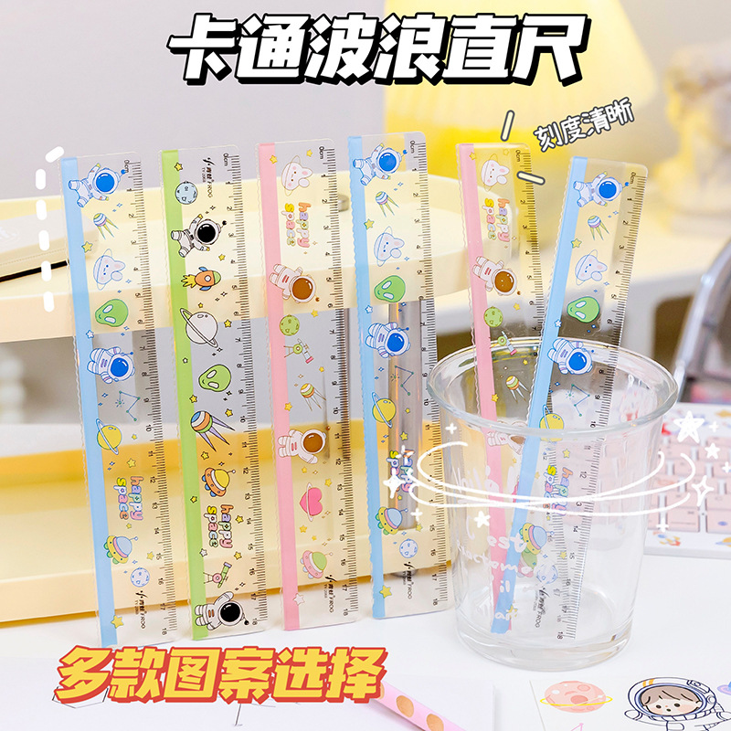 学生卡通亚克力波浪18cm尺子学习文具测量工具绘图工具直尺批发
