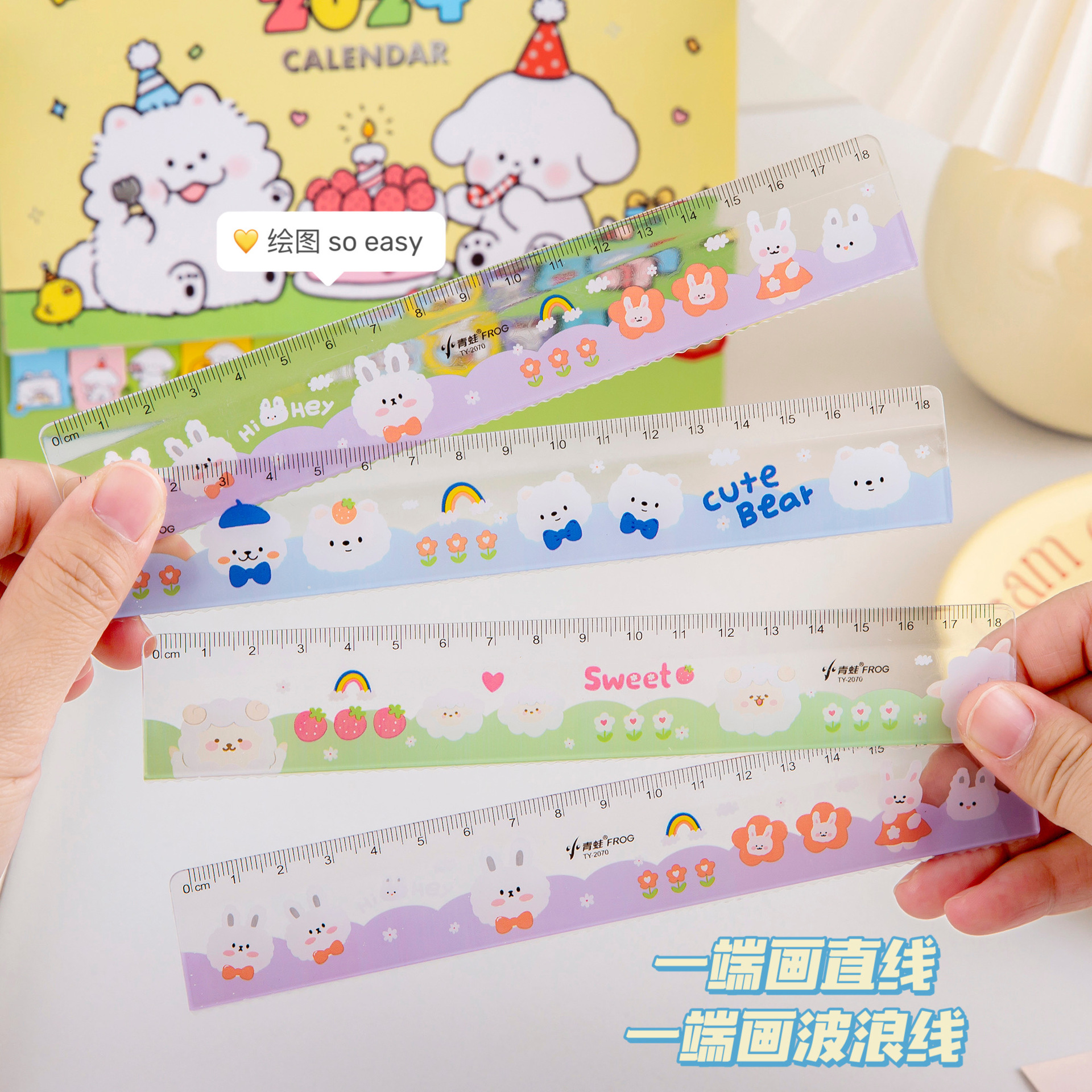 可爱ins亚克力直尺学生奖品卡通20cm带波浪刻度尺文具用品直尺子