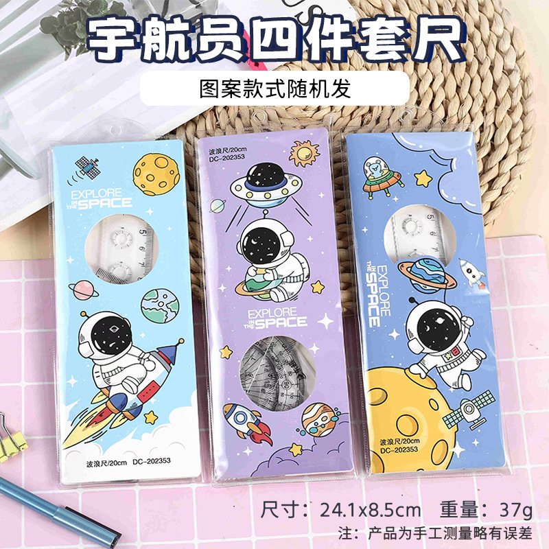 宇航员卡通学生20cm套多功能绘图直尺三角板量角器套装尺子文具