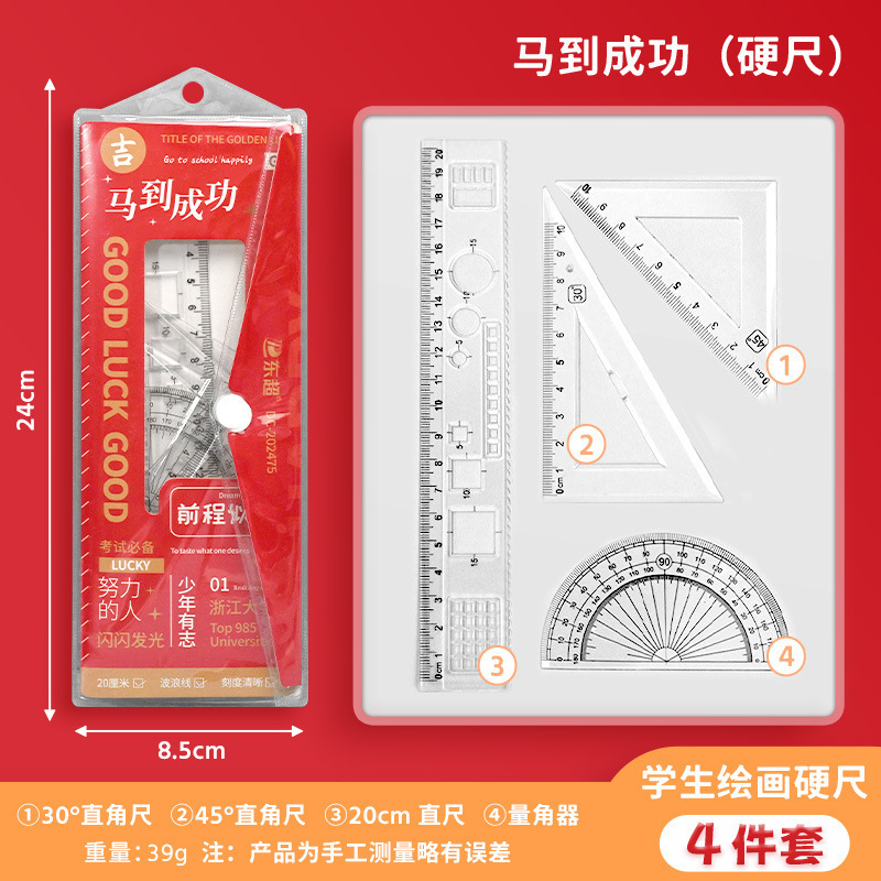 励志文字初中生考试专用套尺四件套小学生儿童绘画多功能塑料尺子