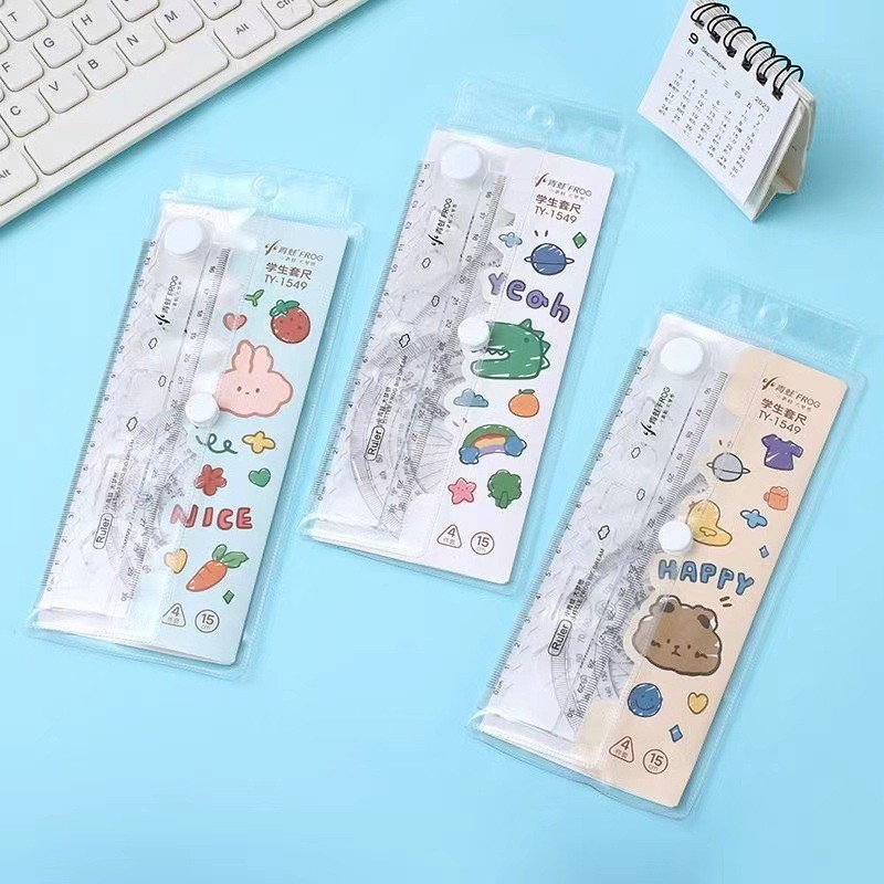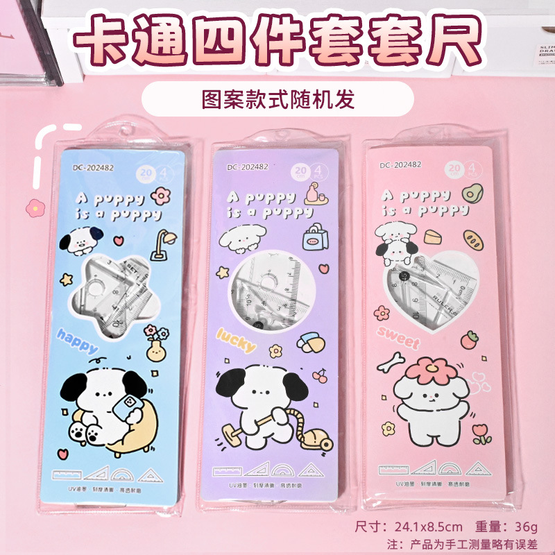 高颜值套尺四件套学生可爱尺子透明办公卡通文具套装初中学习批发