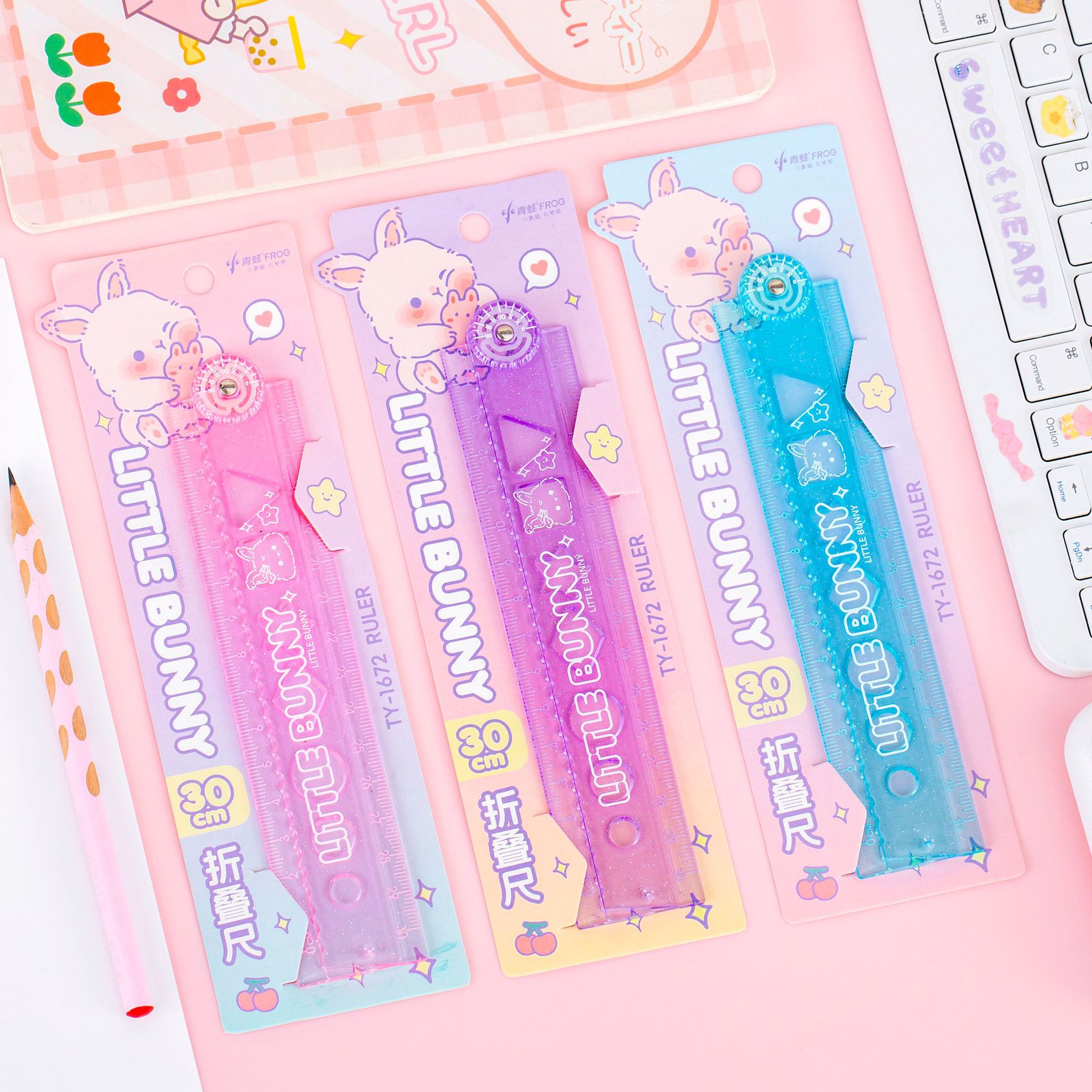透明多功能折叠尺子30cm闪粉果冻色折尺几何图形15cm直尺带波浪线