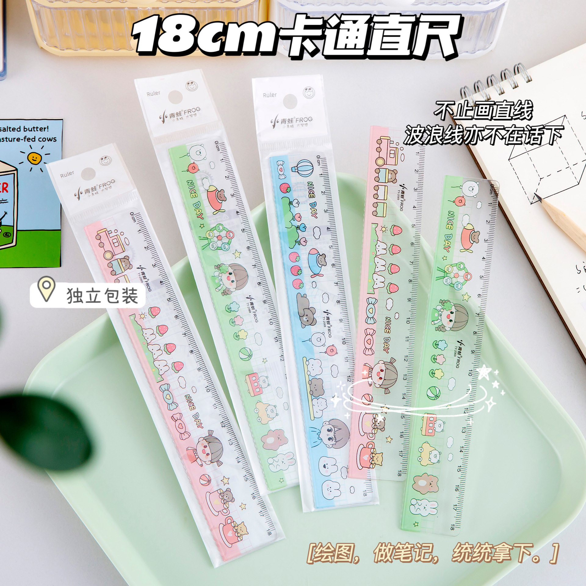 可爱卡通直尺独立包装18cm亚克力波浪尺小学生奖励小礼品尺子批发