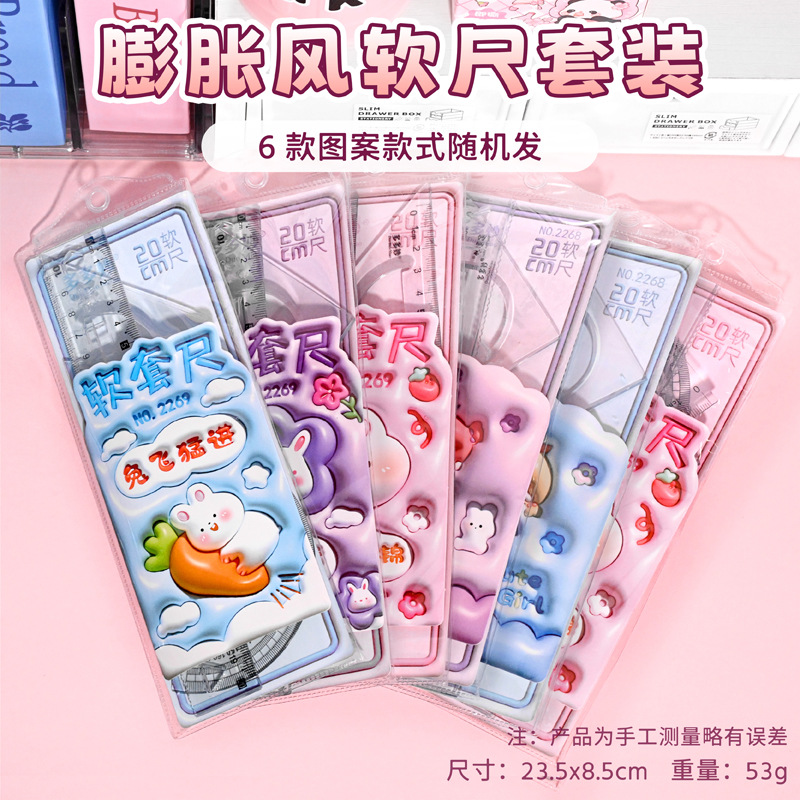 学生卡通套尺四件套20cm软直小学生学习用品文具尺子套装批发刻度