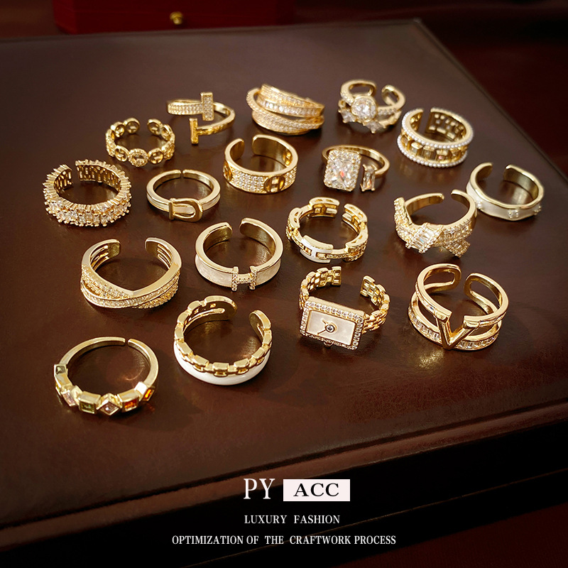简约锆石几何开口戒指轻奢小众高级感食指戒网红百搭时尚手饰批发