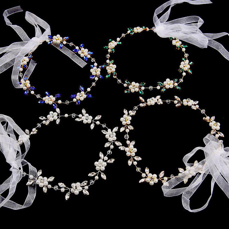 欧美新娘头饰手工水钻发链新娘饰品结婚配饰珍珠皇冠盘发发带配饰