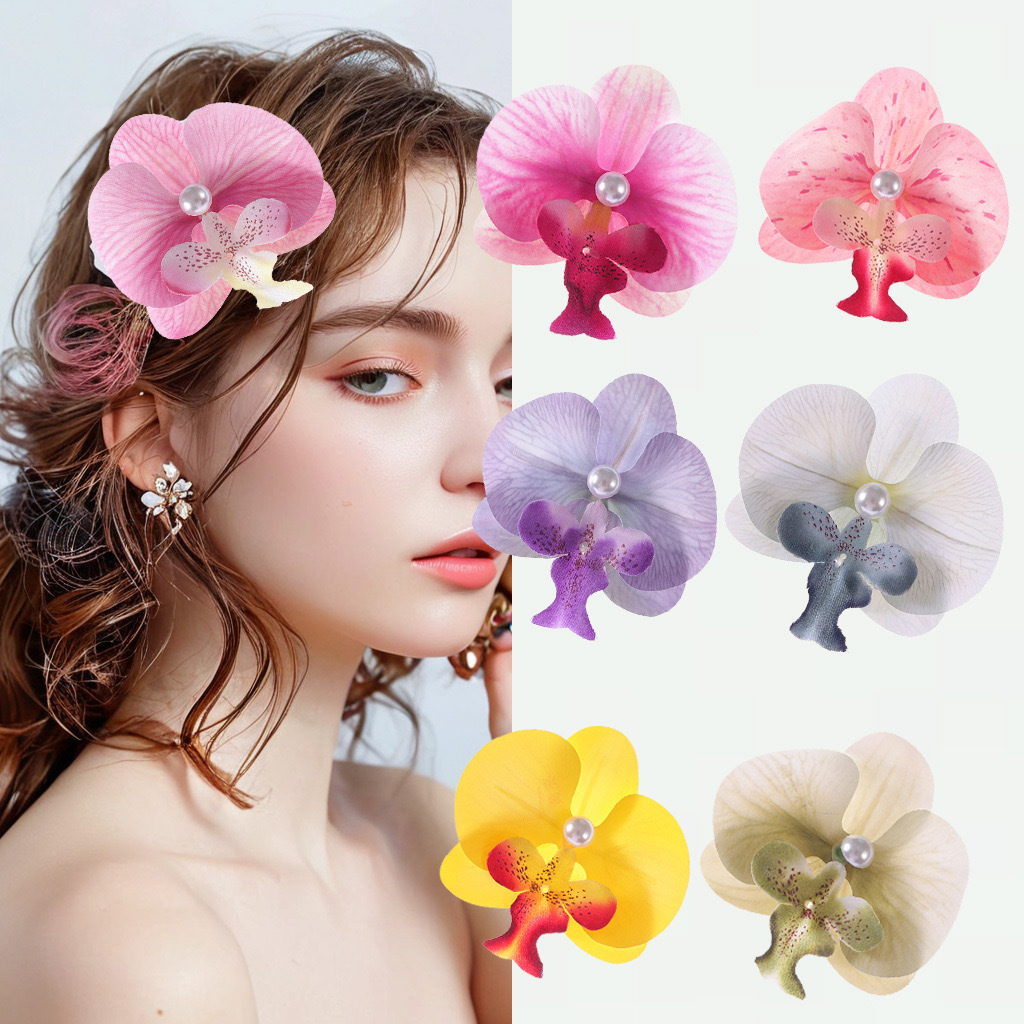 高级氛围感蝴蝶兰花朵抓夹晕染色发夹组合边夹女发饰花朵造型头饰