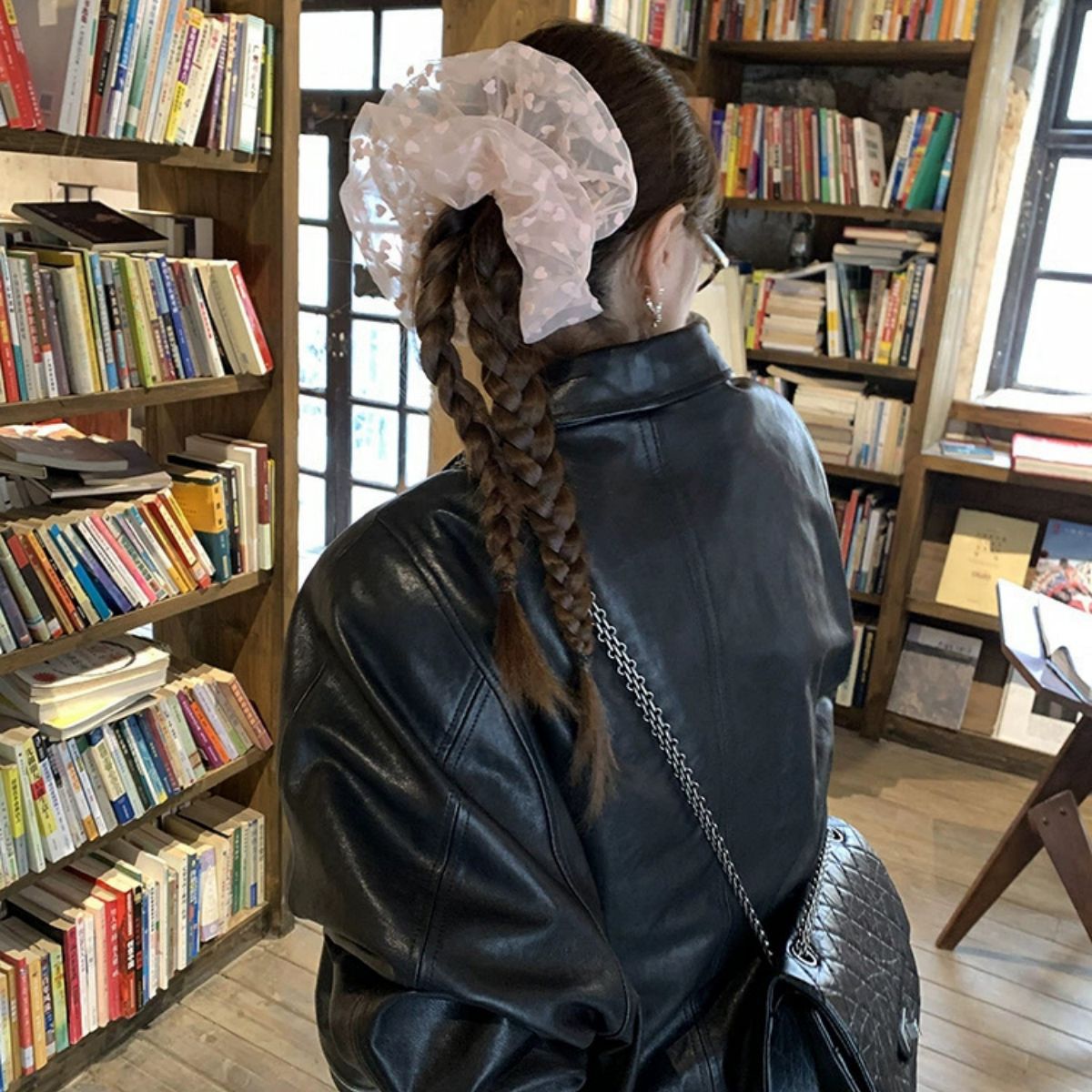 彩色爱心点点泡泡纱韩版蓬松网纱大肠圈气质大号发圈新款头花发绳