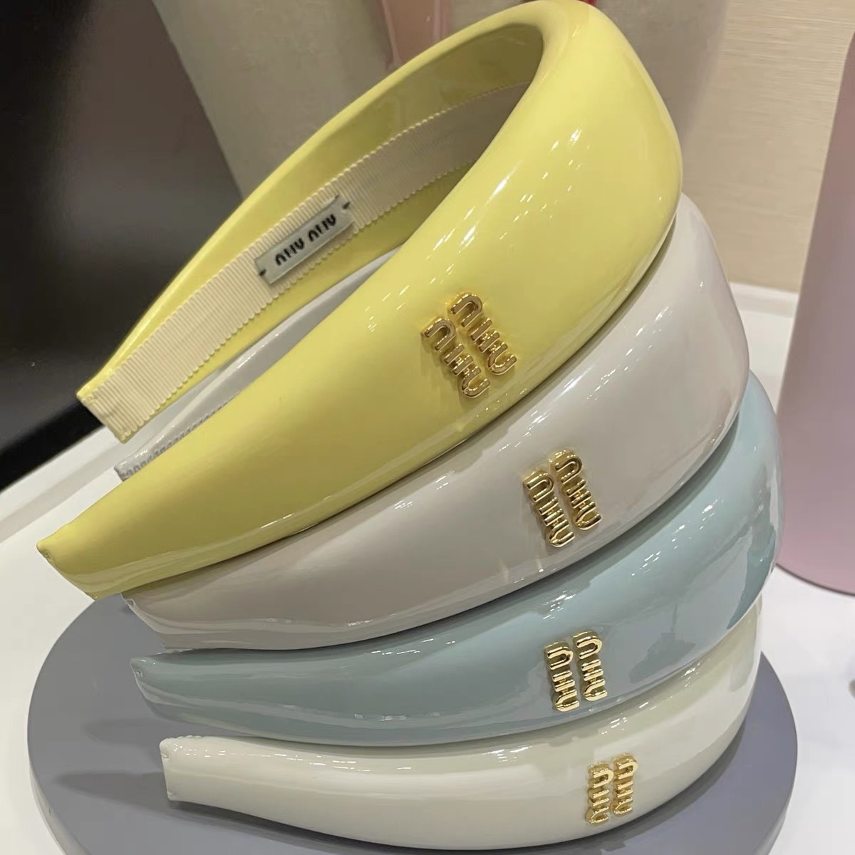 夏季miumiu缪系女孩漆皮发箍漆皮海绵高颅顶发箍百搭复古港风女生