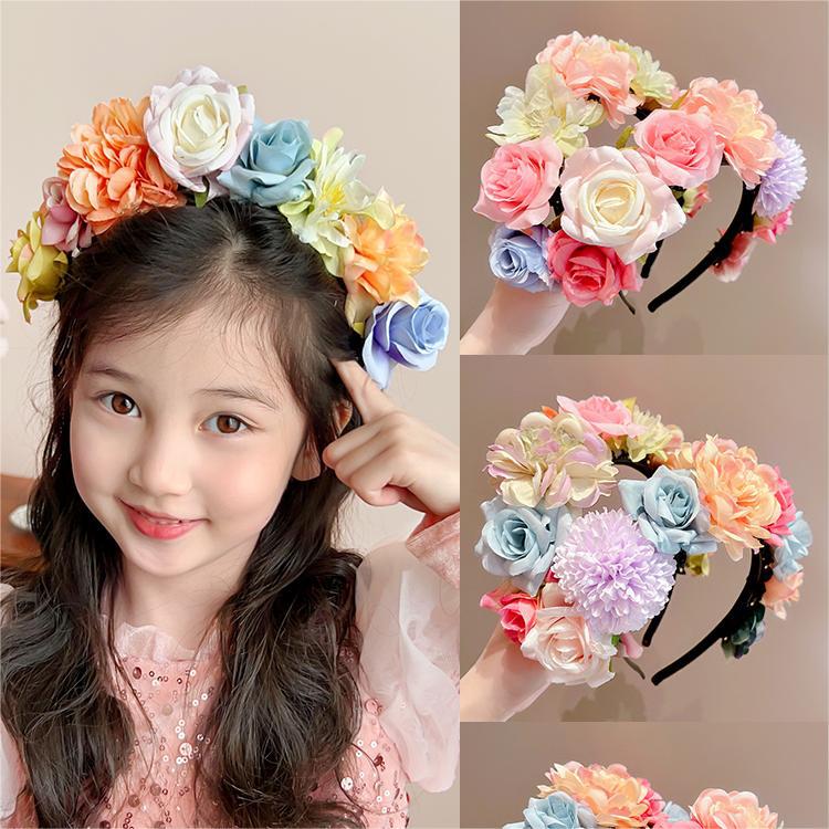 新中式干枯玫瑰花发圈头绳女后脑勺扎麻花辫发饰复古头花发绳头饰