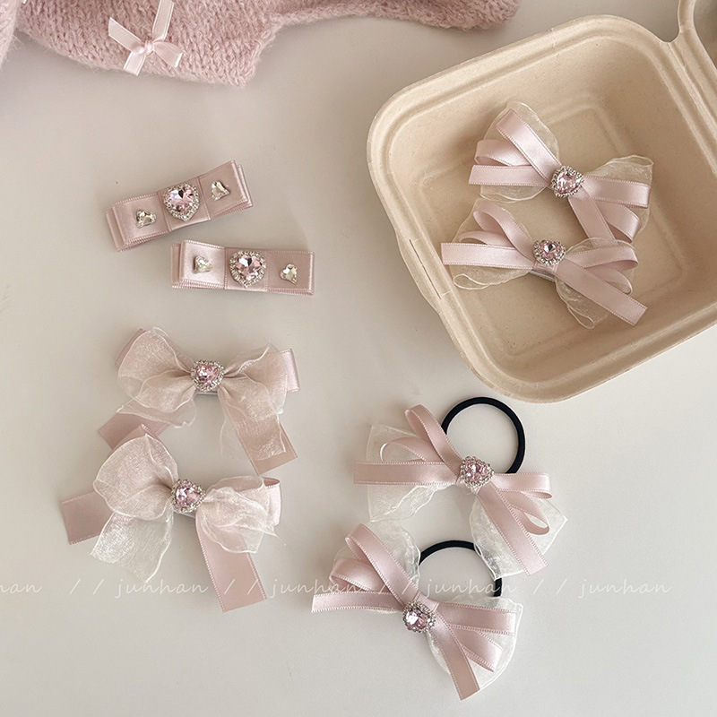 粉色丝带蝴蝶结少女发夹套装侧边刘海碎发bb夹珍珠夹子头饰发卡发