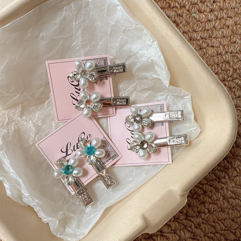 韩国醋酸小花珍珠发夹公主头侧边刘海夹少女心气质一字夹发卡头饰