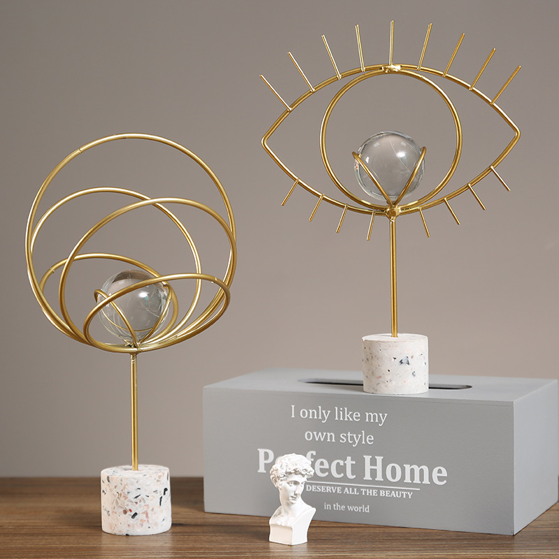 欧式轻奢金属水晶球摆件现代家居客厅电视酒柜桌面装饰铁艺工艺品