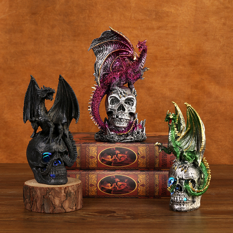 跨境新品万圣节新款战斗龙树脂摆件骷髅家居桌面玄关摆设装饰礼品