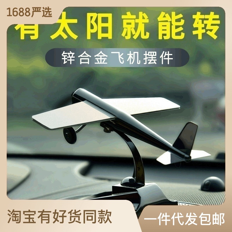可定制logo太阳能旋转飞机模型汽车摆件创意空军礼品车载饰品刻字