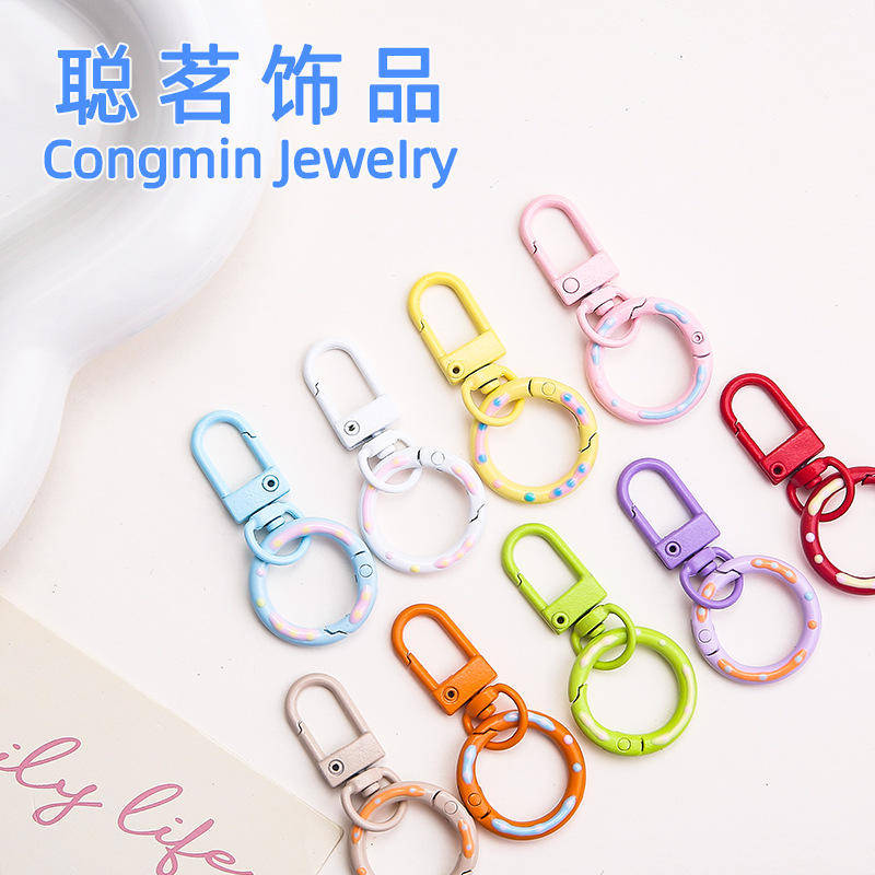 彩色烤漆甜甜圈弹簧扣旋转门扣钥匙扣diy饰品配件钥匙圈玩偶挂件