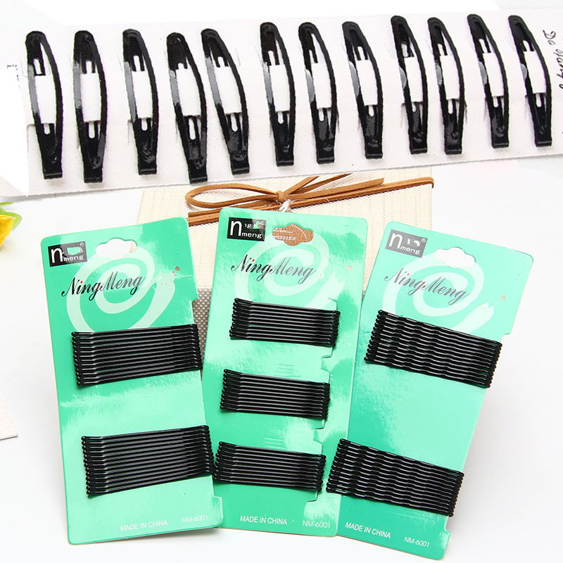 韩版黑色一字夹发夹套装 烤漆波浪BB夹卡子 小钢夹边夹发饰品