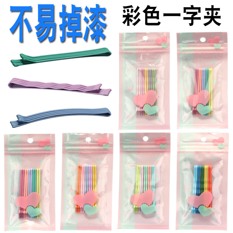 网红热销款6cm彩色钢夹独立袋装 女生留海糖果一字夹不掉漆发卡