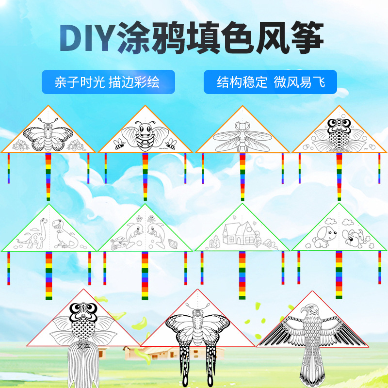 新款儿童DIY风筝描边手工涂色彩绘幼儿园填色线稿教材手绘画风筝
