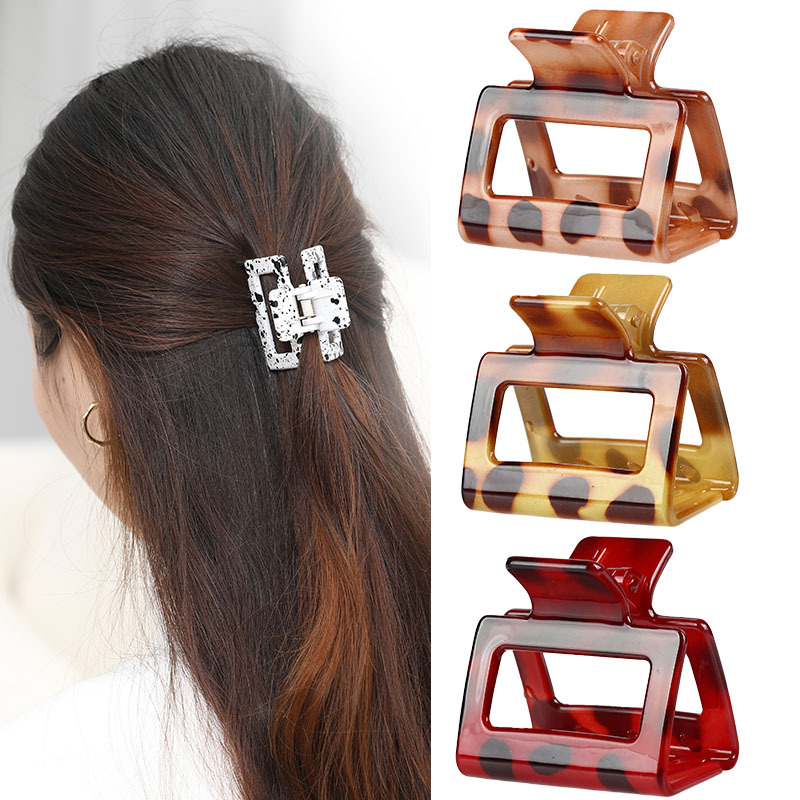韩版时尚发饰树脂5公分方形抓夹 少女气质豹点马尾中号网红鲨鱼夹