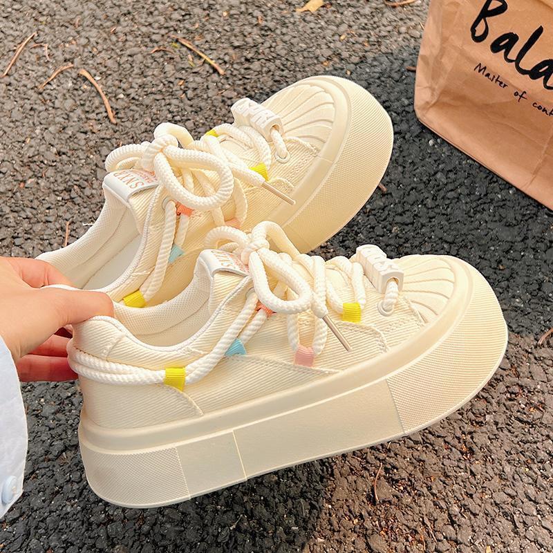 奶fufu帆布鞋女2025春夏透气新款厚底小白鞋女小众贝壳头休闲板鞋