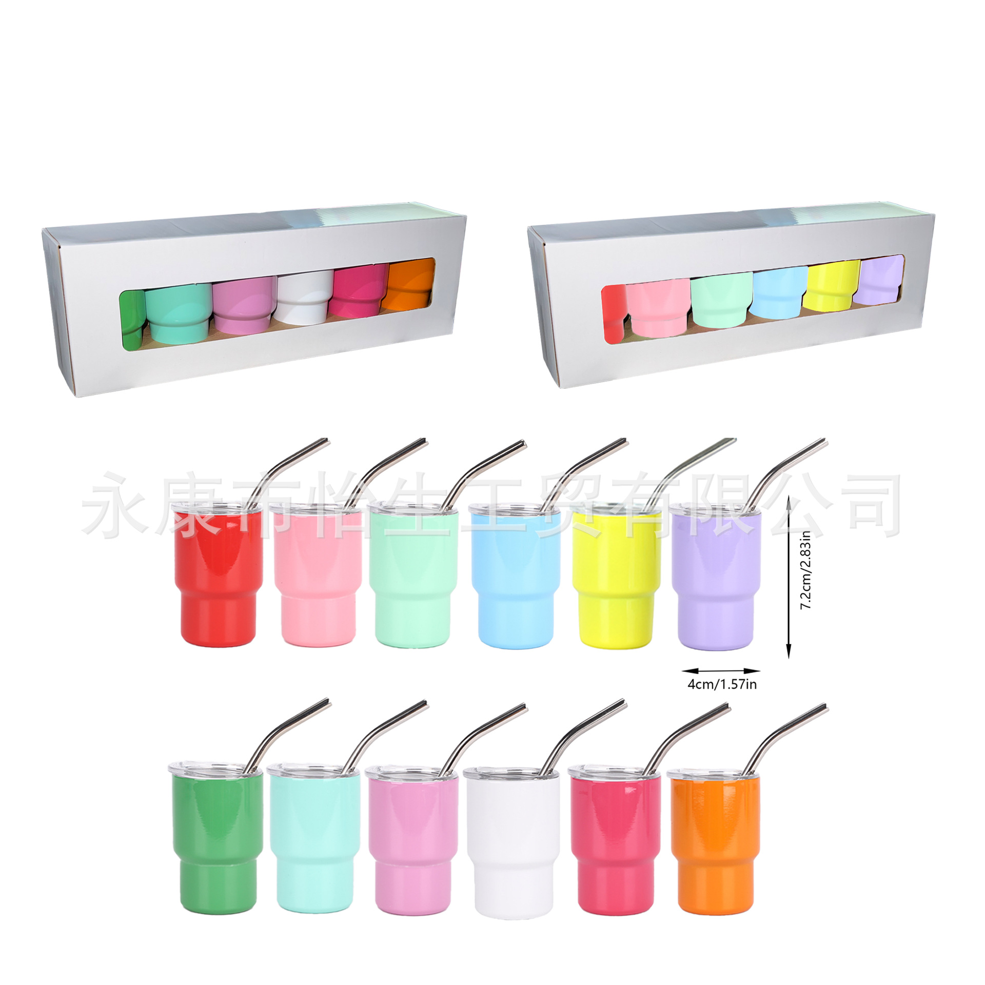 跨境新款2oz3oz热升华迷你小酒杯吸管烈酒杯汽车杯双层不锈钢套装