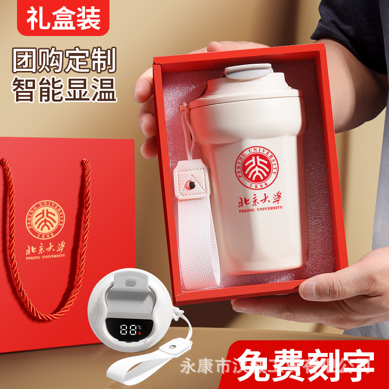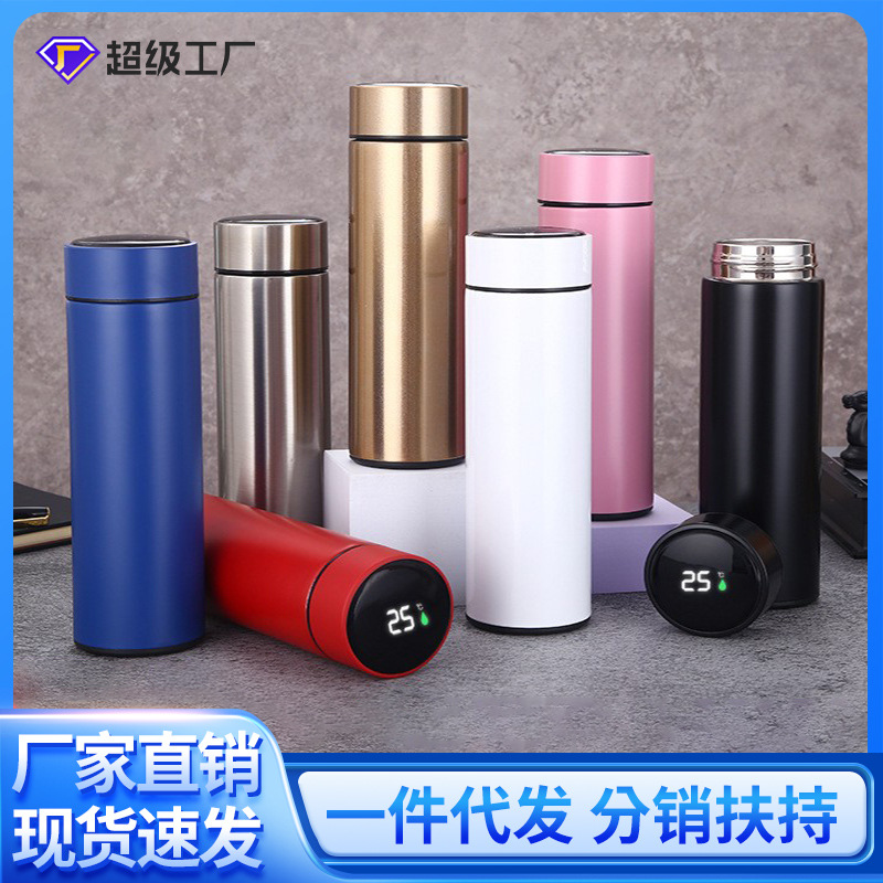 304不锈钢双层真空智能测温保温水杯 直身杯子商务办公礼品杯批发