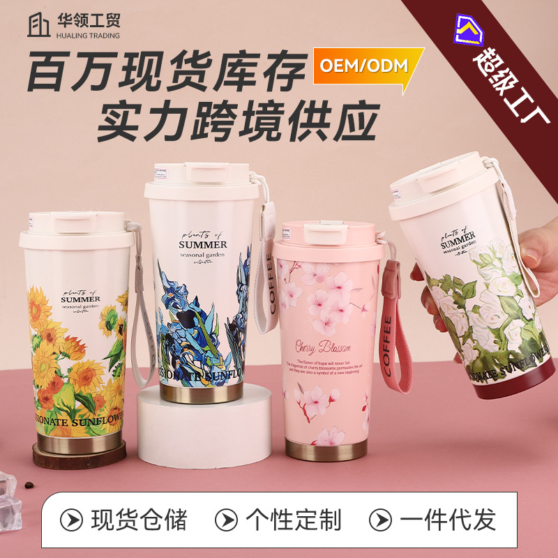 316不锈钢铃兰花咖啡杯双层真空保温杯高颜值户外便携随行双饮杯