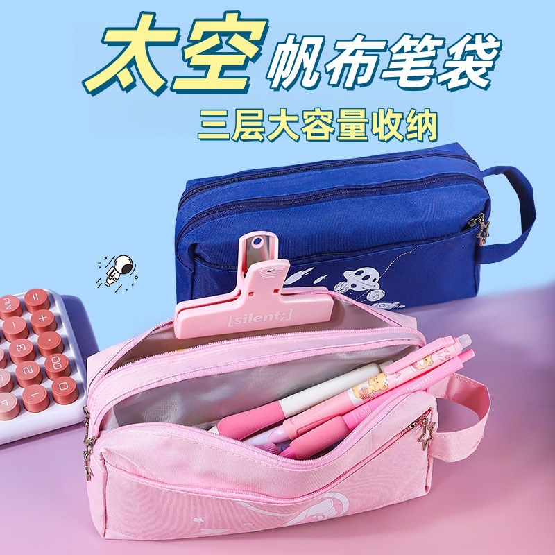 卡通太空笔袋学生多功能大容量铅笔盒桌面文具收纳袋三层分区笔袋
