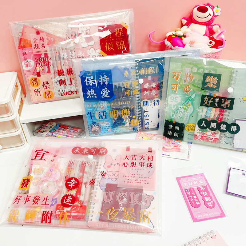 新年儿童文具套装学生奖品大礼包卡通文具礼盒实用套装按扣文件袋