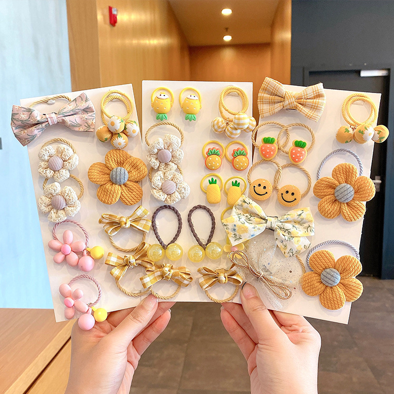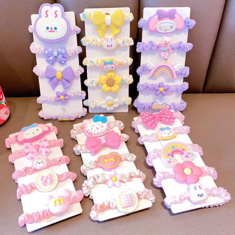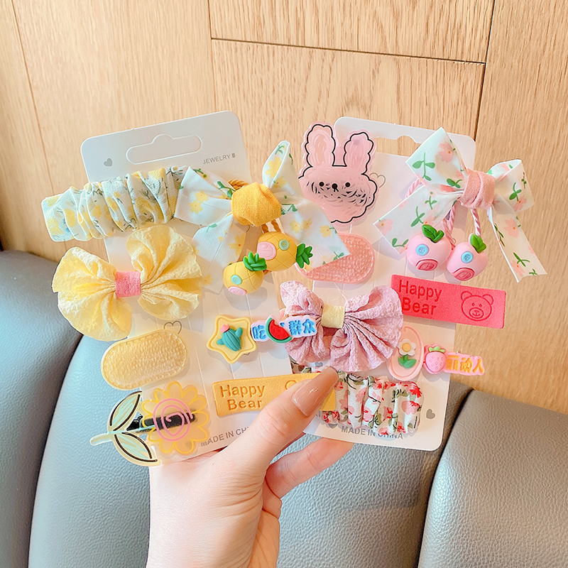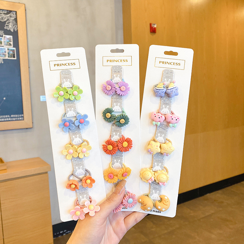 韩版卡通花朵皮筋套装 儿童刘海发夹边夹 女童百搭学生发饰头饰