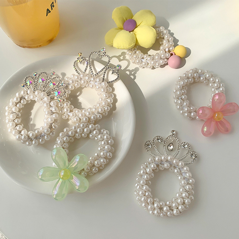 儿童甜美蝴蝶珍珠发圈小女孩头饰发绳扎丸子头头绳不伤发2023新款