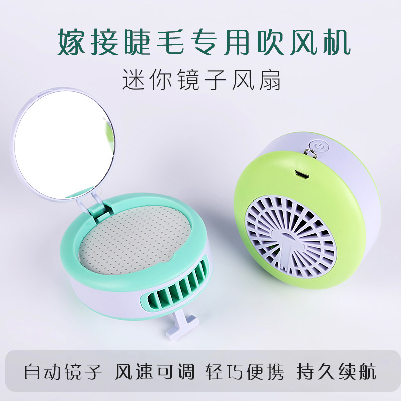 品专利USB充电嫁接睫毛风扇 美睫吹风机手持电动带镜子睫毛风扇