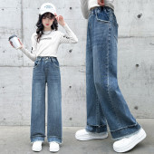 女童牛仔阔腿裤春秋2023新款儿童春装直筒裤女大童韩版宽松裤子潮