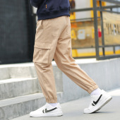 复古口袋立裁工装裤户外风束脚裤保暖运动裤中大男童长裤日系宽松