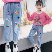 童装女童牛仔裤2023春秋新款儿童洋气女孩长裤中大童宽松休闲裤子