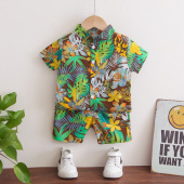 新款童装男童2021夏季短袖衬衫套装沙滩时尚帅气宝宝两件套潮代发