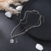 高级感双层拼接毛衣链 小众嘻哈款字母k吊坠锁骨链 男款潮酷项链