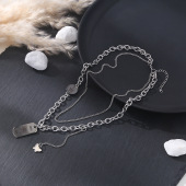 跨境欧美风双层钛钢项链小众土酷字母吊牌复古毛衣链冷淡风锁骨链