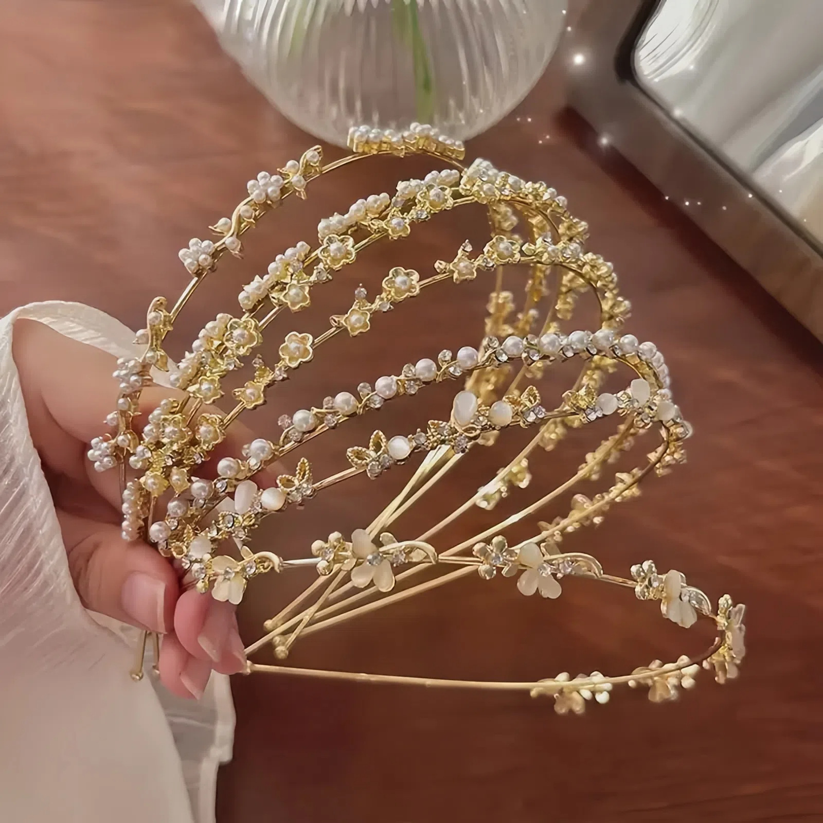 高级感轻奢珍珠水钻发捆发箍韩版满钻超闪仙女细边头箍猫眼头发饰