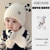 儿童帽子婴儿围巾一体两件套秋冬季男女宝宝针织帽护耳保暖毛绒帽