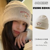 冬季帽子可爱小狗刺绣保暖针织冷帽毛线帽女显脸小百搭大头围帽子