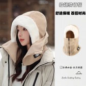 帽子女冬季加厚防风保暖套头帽男拉链围脖一体骑行电动车护颈面罩